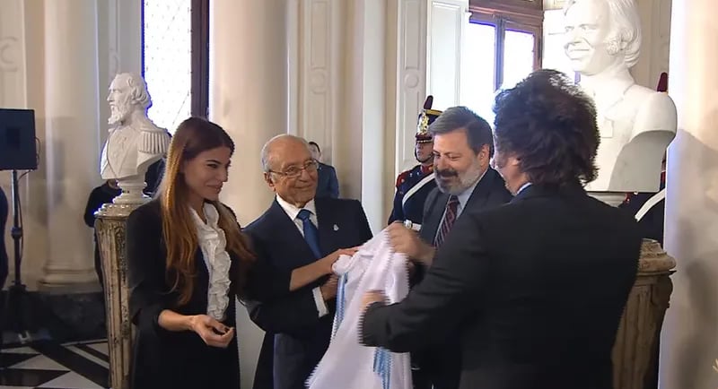 El 14 de mayo de 2024, en el 35 aniversario de las elecciones que lo consagraron como Presidente, Javier Milei descubrió el busto en homenaje a Carlos Saúl Menem en la Casa Rosada. Aquel discurso tomaría notoriedad, por un hecho que lo distingue de su práctica habitual. En medio de la semblanza del ex Primer Mandatario, cuando el relato de su vida alcanzó al período que pasó detenido durante la Dictadura Militar, Milei se emocionó visiblemente. En particular, lo emocionó el hecho de que la madre de Menem muriera sin que la dejaran ver a su hijo, y sin que el riojano pudiera concurrir a su entierro.